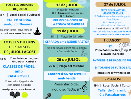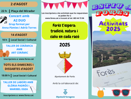 Des de l'Ajuntament de Forès us presentem el programa d'activitats d'estiu d'enguany.