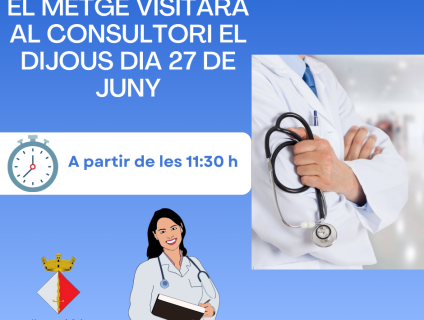 EL METGE VISITARÀ AL CONSULTORI EL DIJOUS DIA 27 DE JUNY