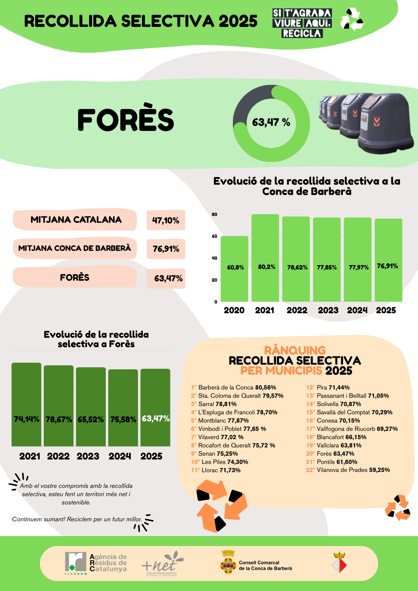 Durant el 2025 Forès ha aconseguit separar selectivament 63,47% dels residus generats, contribuint a la millora del reciclatge i a la protecció del medi ambient.